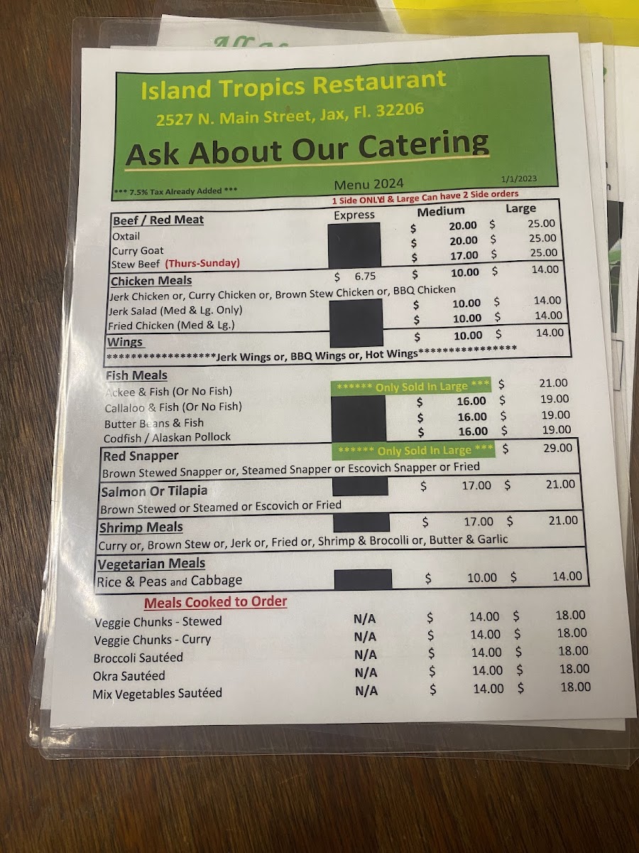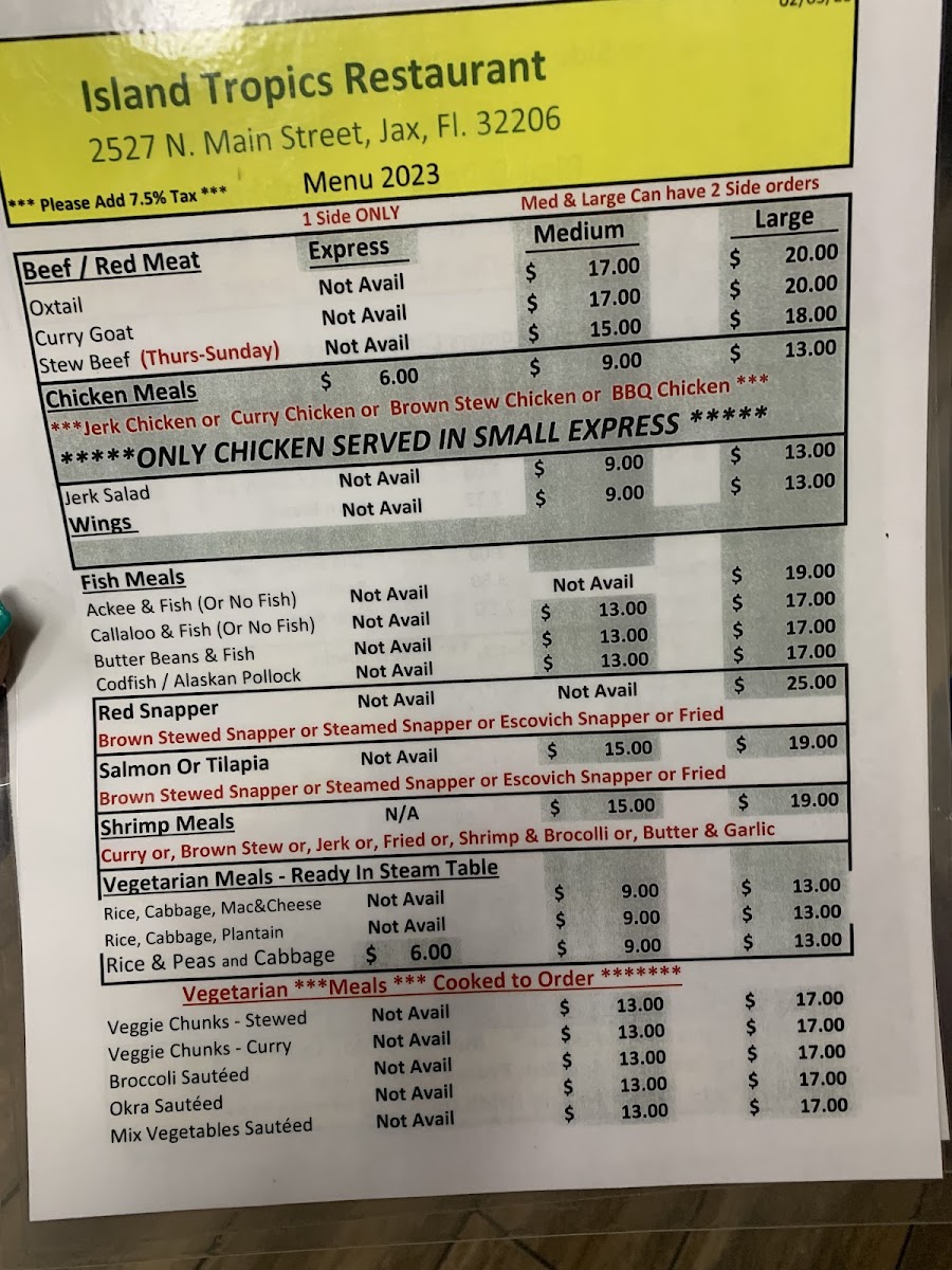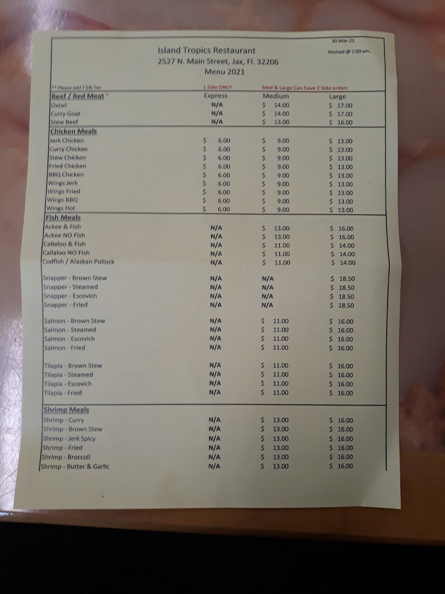 Island Tropics Restaurant Menu